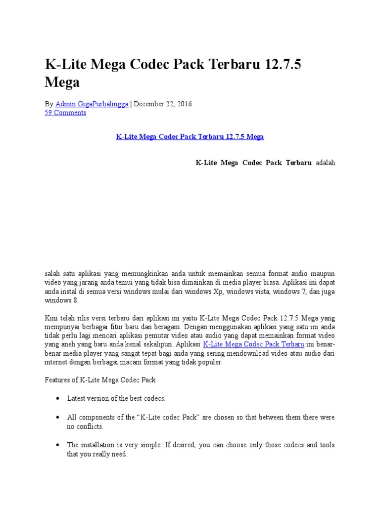 Klite mega codec is a comprehensive collection of video codecs and directshow filters. Codecs and directshow filters are needed for encoding and decoding audio and video formats. Your pc may require you to. Codec.oleng` (@hengkygz27) di tiktok | 127 suka. Beli k lite mega codec terbaru harga murah august 2021 di tokopedia!